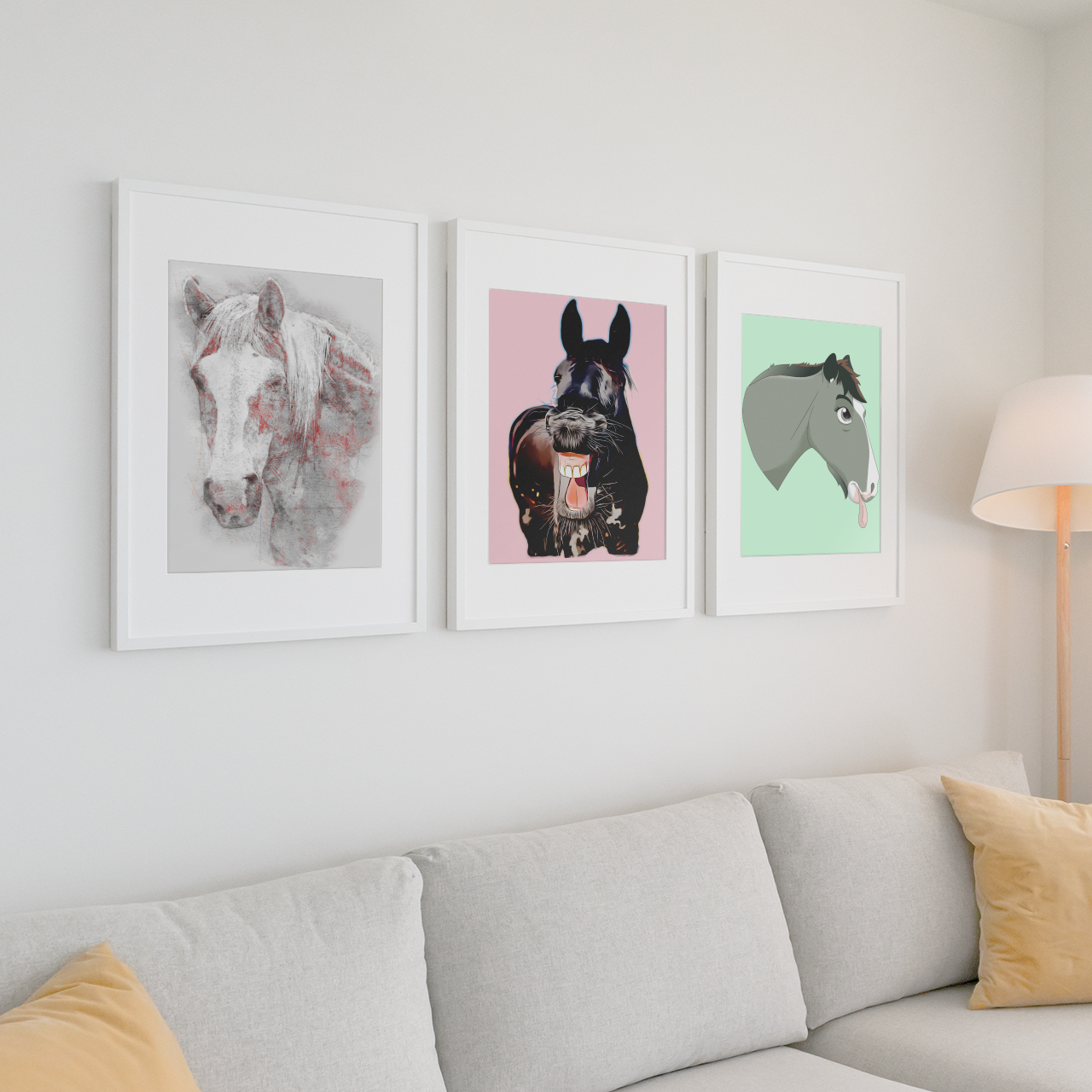Our hand drawn styles include the realistic TruPaint showcasing your loved one as a true to life artistic impression. Alternatively our Fairytale Cartoon style accentuates the cutest features of your horse or pet and is really suited to snuggly horse blankets or cute horse phone cases.